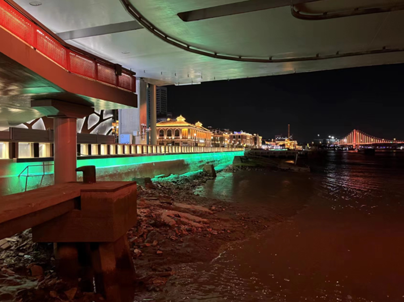 寧波英國領(lǐng)事館舊址為江北岸近代建筑群4個(gè)建筑之一,英國領(lǐng)事館舊址座落于江北區(qū)白沙街道白沙路56號(hào)甬江西北岸,建成于清光緒六年(1880),現(xiàn)僅存英國領(lǐng)事館主樓(辦公大樓)一幢,座北朝南,面闊七間,四坡頂,紅色洋瓦覆蓋,平面呈長方形,八根粗大混泥土方形柱支撐上、下兩層,前置廊,梁架采用近代西式三角形木屋架。室內(nèi)有壁爐、拼木地板,頂部為木條泥滿平頂,上、下走廊采用水泥磨石地坪,屋基四周鋪設(shè)條石。該建筑為保存較完整的典型英國式西洋建筑,2005年被公布為省級(jí)文保單位。通過對建筑不同部位不同色溫的搭配應(yīng)用,勾勒出建筑的整體層次感,賦予歷史建筑新的特色與美感。